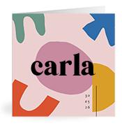 Carla is een middellange naam en bestaat uit 5 letters. De naam begint met de letter C en is opgebouwd uit 2 klinkers (a, a) en 3 medeklinkers (c, r, l).