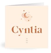 Cyntia is een middellange naam en bestaat uit 6 letters. De naam begint met de letter C en is opgebouwd uit 2 klinkers (i, a) en 4 medeklinkers (c, y, n, t).