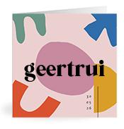 Geertrui is een lange naam en bestaat uit 8 letters. De naam begint met de letter G en is opgebouwd uit 4 klinkers (e, e, u, i) en 4 medeklinkers (g, r, t, r).