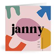 Janny is een middellange naam en bestaat uit 5 letters. De naam begint met de letter J en is opgebouwd uit 1 klinkers (a) en 4 medeklinkers (j, n, n, y).