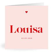 Louisa is een middellange naam en bestaat uit 6 letters. De naam begint met de letter L en is opgebouwd uit 4 klinkers (o, u, i, a) en 2 medeklinkers (l, s).