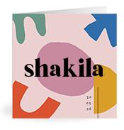 Shakila is een middellange naam en bestaat uit 7 letters. De naam begint met de letter S en is opgebouwd uit 3 klinkers (a, i, a) en 4 medeklinkers (s, h, k, l).