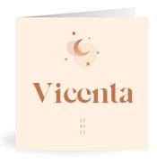 Vicenta is een middellange naam en bestaat uit 7 letters. De naam begint met de letter V en is opgebouwd uit 3 klinkers (i, e, a) en 4 medeklinkers (v, c, n, t).