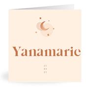 Yanamarie is een lange naam en bestaat uit 9 letters. De naam begint met de letter Y en is opgebouwd uit 5 klinkers (a, a, a, i, e) en 4 medeklinkers (y, n, m, r).