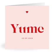 Yume is een korte naam en bestaat uit 4 letters. De naam begint met de letter Y en is opgebouwd uit 2 klinkers (u, e) en 2 medeklinkers (y, m).
